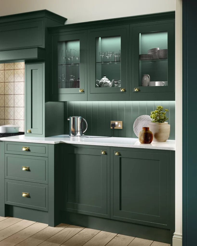 Visit our showroom to explore the Ellesmere Heritage Green Kitchen in full detail. From layout inspiration to personalised design guidance, our expert team will help you bring this classic and character-rich look into your home.